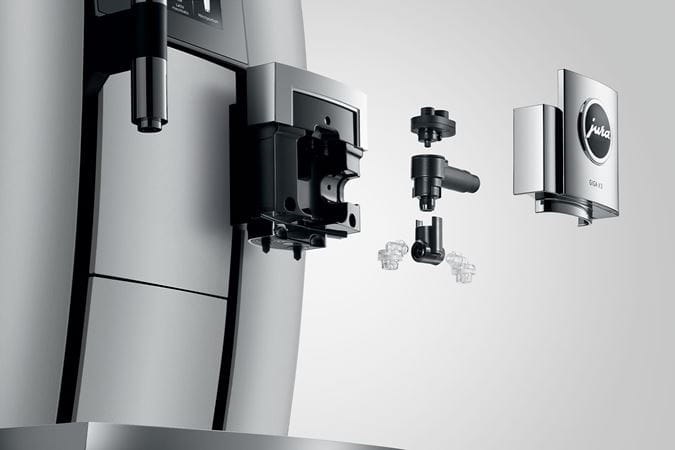Het onderhoud van de GIGA X3c gaat net zo gemakkelijk, logisch en intuïtief als de bediening ervan. Originele JURA onderhoudsproducten en geïntegreerde spoel- en reinigingsprogramma’s zorgen met één druk op de knop voor TÜV-gecertificeerde hygiëne. De melksysteemreiniging is net zo doordacht. Volautomatisch en gestart door een touch op het display garandeert deze perfecte reinheid in de omgang met melk. De massieve combi-uitloop kan in een handomdraai worden gedemonteerd. De daarin vooraan geplaatste melkuitlopen zijn gemakkelijk toegankelijk en kunnen indien nodig zeer eenvoudig worden vervangen.